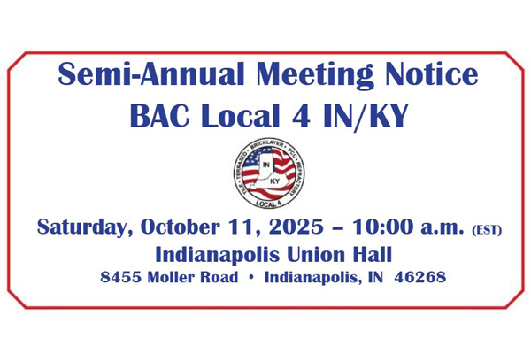 For over a century the Bricklayers and Allied Craftworkers of local 4 IN/KY have actively fought to improve our members’ quality of life both in and out of the job. We provide access to safe working conditions, solidarity among members, fair wages, and good benefits. Today we train and represent the most highly sought after craftworkers in the industry with expertise in bricklaying, tilesetting, Marble, Stone, and Cement Masonry, Terrazzo and Mosaic work, Plastering, PCC Restoration and more. Learn More